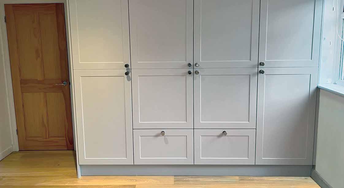 We also design and install bespoke new kitchens, bedrooms, boot rooms, media walls, living room storage.