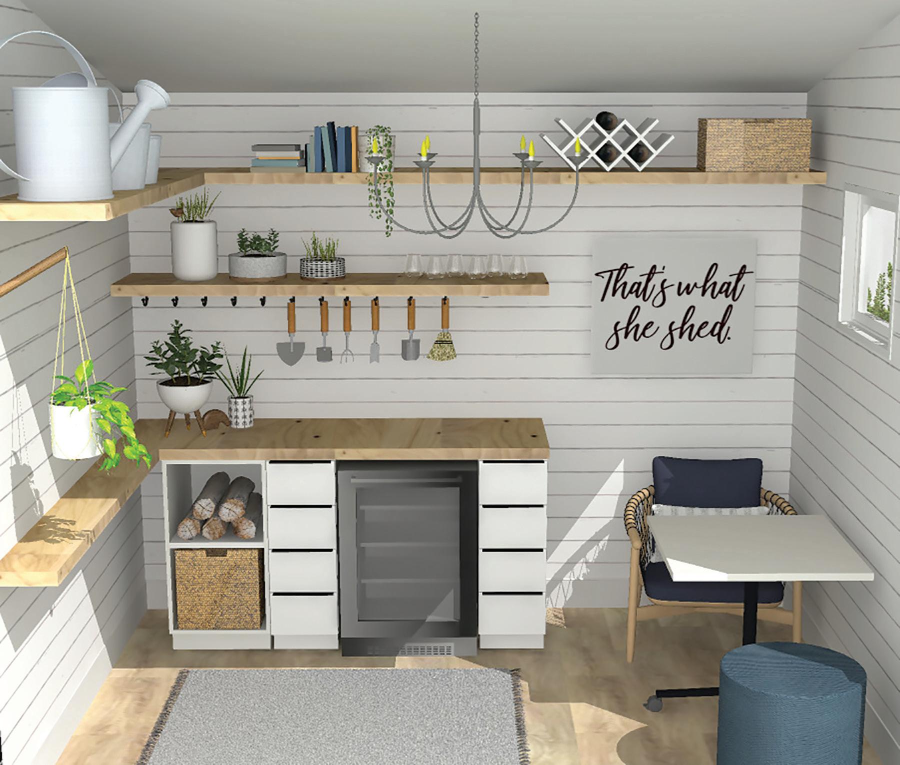 Acelebration of theRed River ValleyHome &Gar den Show ’s 60thAnniversary,this glit zy,trendybackyardshed will go to one lucky raffle winner.Itisvalued at over$4,000 and wasdesigned/ built by membersofNor th Dakota Interior Designers and Home BuildersAssociation of F-M’sRemodelersCouncil.Branded as a“She Shed”raffle, $10 entry tickets are available to ever yone.Proceeds benefit Home BuildersCareofF-M Foundation