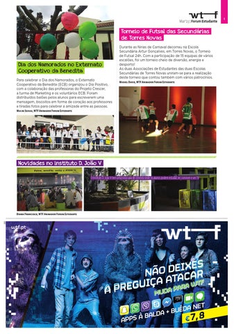Durante as férias de Carnaval decorreu na Escola Secundária Artur Gonçalves, em Torres Novas, o Torneio de Futsal 24h. Com a participação de 15 equipas de vários escalões, foi um torneio cheio de diversão, energia e desporto! As duas Associações de Estudantes das duas Escolas Secundárias de Torres Novas uniram-se para a realização deste torneio que contou também com vários patrocínios. Miguel David, WTF Animador Forum Estudante