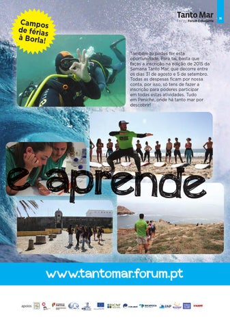 Também tu podes ter esta oportunidade. Para tal, basta que faças a inscrição na edição de 2015 da Semana Tanto Mar, que decorre entre os dias 31 de agosto e 5 de setembro. Todas as despesas ficam por nossa conta, por isso, só tens de fazer a inscrição para poderes participar em todas estas atividades. Tudo em Peniche, onde há tanto mar por descobrir!