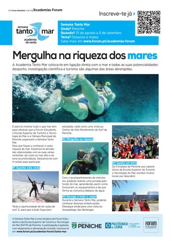 Semana Tanto Mar Onde? Peniche Quando? 31 de agosto a 5 de setembro Tema? Oceanos e mares Sabe mais em www.forum.pt/academias-forum