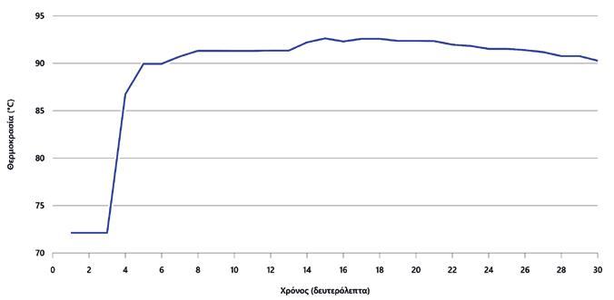 θερμοκρασία ικανοποιητικά υψηλή, ιδίως για τις μεγάλες σε ml εκχυλίσεις.