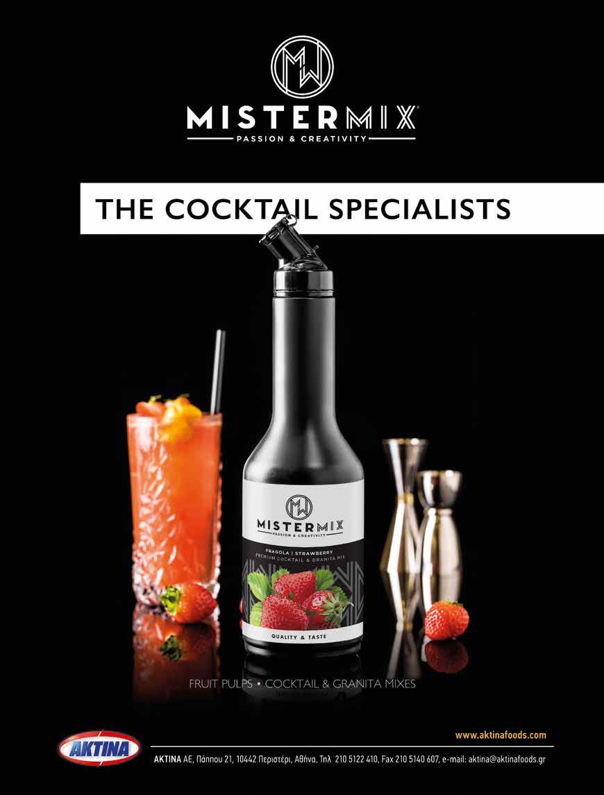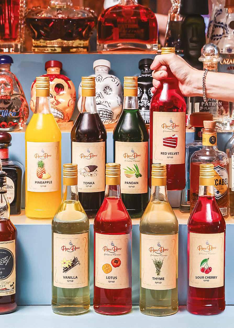 Amaretto, Blue Curaçao, Bubble Gum, Falernum, Garden Mint, Ginger Lime, Salted Caramel και Spicy.