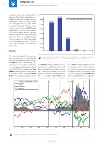 cji USDindex pokazuje, jak bardzo narażona na ryzyko jest wartość rezerw dolarowych. Choć obecnie zmienność indeksu obniżyła się, to jednak jest ona nadal czterokrotnie wyższa niż zmienność z początku kryzysu, tuż po upadku banku Bear Sterns, kiedy