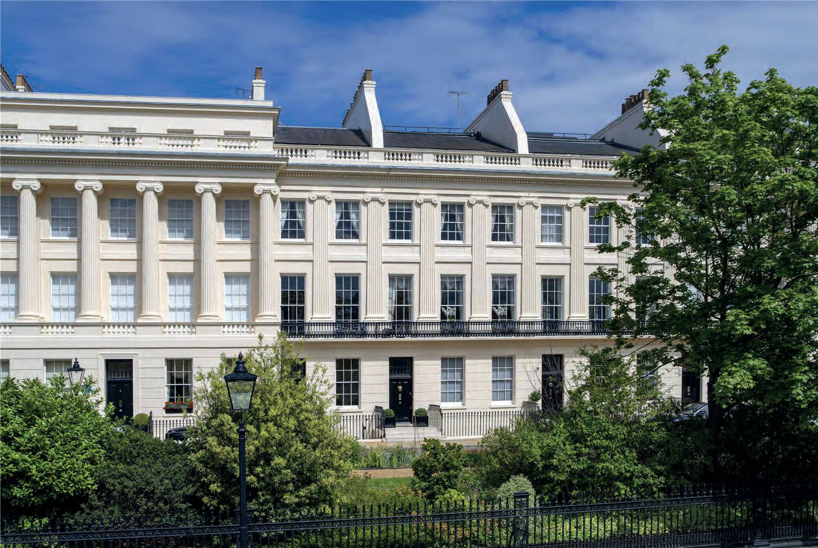 An elegant Grade I listed classical home set on a private terrace overlooking Regent's Park, presented in excellent condition. 3 reception rooms, 4/5 bedrooms, 5 bathrooms, media room, cellar, guest suite, 4 parking spaces, private courtyard, and direct access to communal gardens.