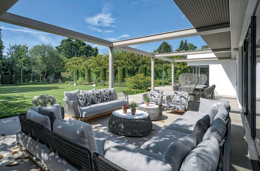 The very generous accommodation of 7,885 sq ft/733 sq m (net) is arranged over three lateral footplates and provides an excellent balance of reception space and bedroom suites, with an emphasis on internal entertaining which works hand in hand with the external patio loggia with retractable roof, which in effect doubles as a wonderful extra summer ‘room’.