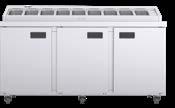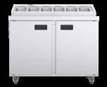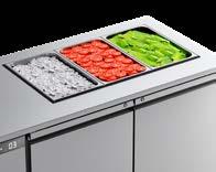 Saladette dimensions 510 x 305mm (w x d). Accepts 1x GN1/1 pans or 3 x GN 1/3 pans per saladette (maximum 100mm depth) (per section) (per section)