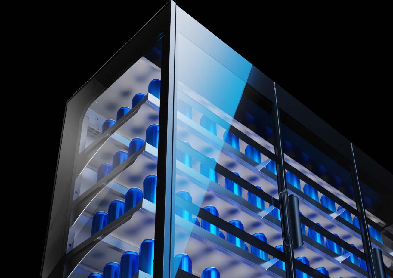 Avec nos portes vitrées sans cadre, vous économisez 80 % d’énergie par rapport aux modèles sans porte.