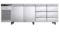 Nos plans de travail réfrigérés sont disponibles dans toutes les sortes et tailles. Simples ou élargis, avec tes combinaisons de tiroirs jusqu’aux vides pour saladette.