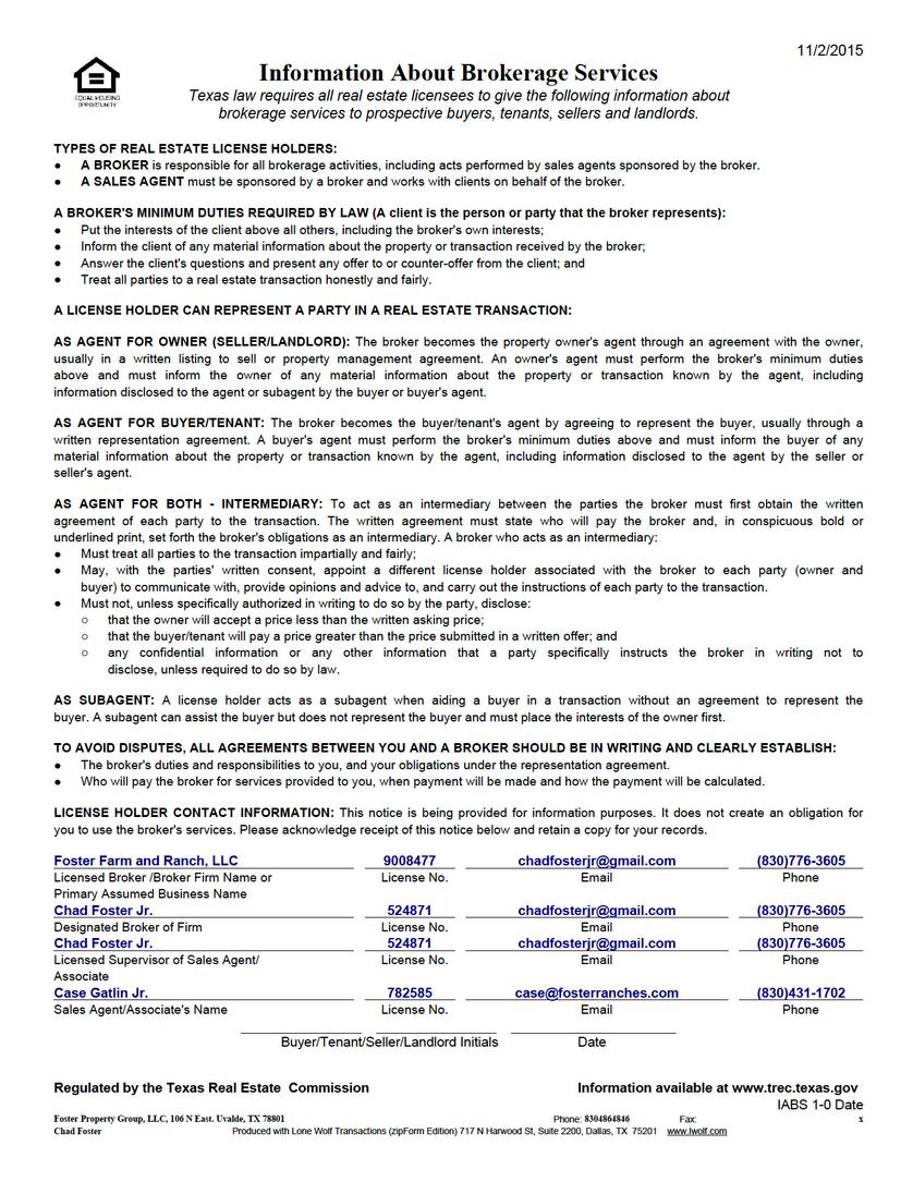 This information has been obtained from sources Foster Farm and Ranch Real Estate deems reliable. Because this information has been provided by third parties, we cannot guarantee that it is accurate. All parties should undertake to verify the information and agree to rely on their own diligence as opposed to any representations contained herein. All listings are subject to changes, errors, omission, prior sale, withdrawal of property from the market without prior notice, and approval of purchase by the owner.Buyer’s agent must be identified on first contact and must be present at initial showing of the property listing in order to participate in real estate commission.