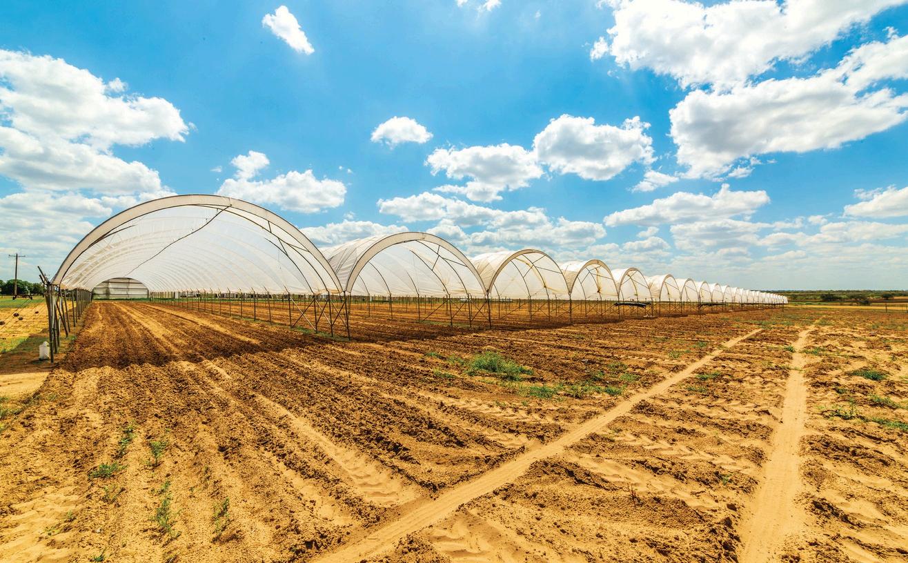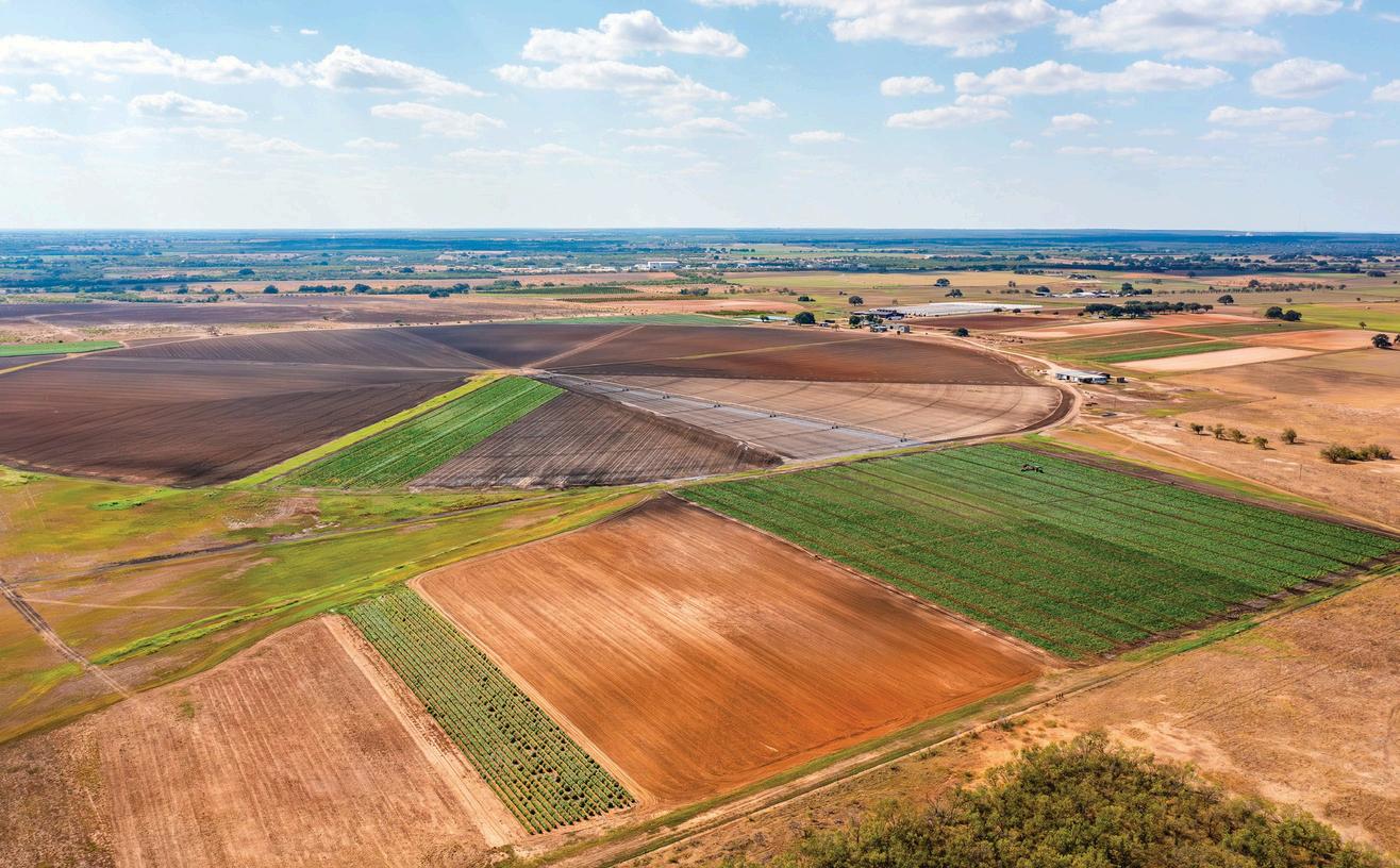 250± acres irrigated pivot land 40± acres of stabled, 35± acres of irrigated peach orchards with 4 primary tree varieties producing peaches between late April and June annually, 5± Certified Organic acres in a stateof- the-art retractable roof CRAVO Greenhouse (temperature controlled with propane heaters and is currently used to produce Texas Organic Strawberries December through the end of May annually), 5+- acres Certified Organic acres in 48 covered “hoop houses”, (hoop houses are also being used to produce Strawberries December through the end of May annually).