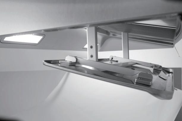 When idle, the wing-like surround suction plate and the smoke-hatch’s flat surfaces make cleaning a breeze.