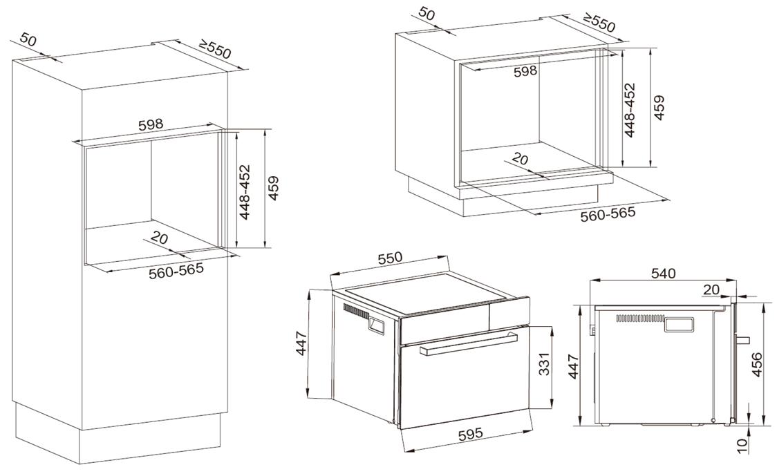 Built-in size (W×H×D): 598x459x(≥550)mm