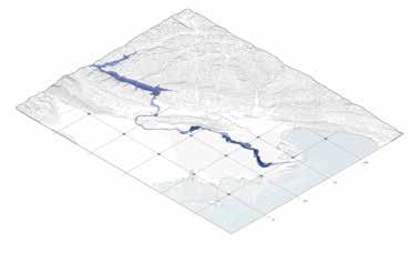 178 Π Α Ρ Α Χ Θ Ε Ι Α Σ3.8 : Χάρτης Υγροτοπικού Πάρκου Δεύτερη περιοχή ενδιαφέροντος είναι η αναξιοποίητη παρόχθια έκταση μεταξύ δύο υποδομών (φράγματος – γέφυρας). Στόχος του σχεδιασμού είναι να αποτελέσει ένα τοπίο που διαχειρίζεται την ορμητικότητα του ποταμού τους χειμερινούς μήνες παρέχοντας παράλληλα στους κατοίκους ένα τοπίο αναψυχής δίπλα στο νερό. Το τεχνητό υγροτοπικό πάρκο θα αποτελέσει τον δεύτερο σταθμό επίσκεψης εξοικειώνοντας τους κατοίκους με την εναλλαγή των υδάτινων τοπίων και την εποχικότητα του ποταμού. Το πάρκο εφοδιάζεται από την ροή του ποταμού και τις αυξημένες περιόδους βροχόπτωσης καθιστώντας εμφανή τα σημάδια πλημμυρισμού και συγκέντρωσης νερού. Οι δραστηριότητες που φέρει επηρεάζονται από την εμφάνιση του νερού και μεταλλάσσονται δημιουργώντας νέα προγράμματα προς χρήση/ εξερεύνηση. Τοπιακή Υποδομή Υ γ ρ ο τ ο π ι κ ό Π ά ρ κ ο