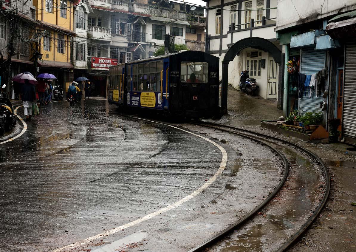 Situated at an elevation of 2042 meters (6,700 feet), Darjeeling is surrounded by lush tea plantations, flower-covered meadows and beautiful Himalayan peaks. Nearby is 8,595-meter (28,208foot) Kanchenjunga, the third highest mountain in the world, and Buddhist monasteries and convents. Sprawled over a steep mountain ridge, Darjeeling is a quaint hill station with colonial-era buildings and gardens. One of the best ways to reach the city is by riding the 140-year-old Darjeeling Himalayan Railway that meanders through some of the most aweinspiring landscapes in and around the hill station.