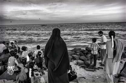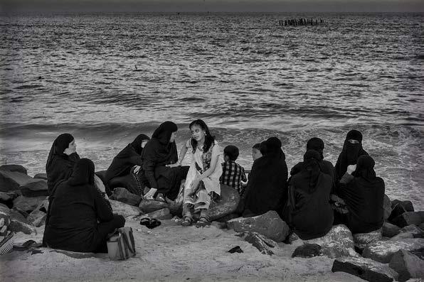 and behave moderately. Whether Burqa confines a woman and deprives her from basic rights or not is a topic open to debate. Leaving that issue aside, I tried to see the women wearing it as a human being and no particular species. In recent times, while visiting a small city by the seaside, I got a chance to click some photos of women in Burqa, in different moods expressed by different actions and gestures. Though fully covered by this unique dress, their movements somehow connected and made me feel like I could sense their feelings. The way they sat by the beach, on the stones looking over the waves towards infinity, their chirps, spending time with kids, or simply talking to each other – all were communicating in a language never spoken. Standing behind the viewfinder, I tried to capture the small fragments of their untold stories and weave them in a tale that says, live life to express, not to impress.