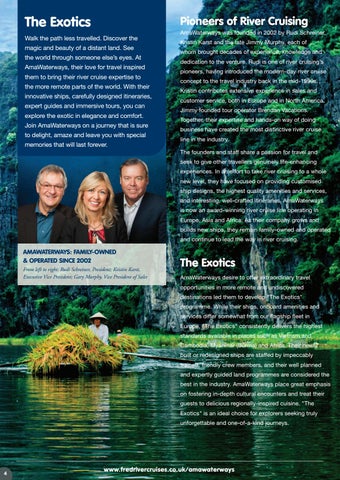 AMAWATERWAYS: FAMILY-OWNED & OPERATED SINCE 2002 From left to right: Rudi Schreiner, President; Kristin Karst, Executive Vice President; Gary Murphy, Vice President of Sales