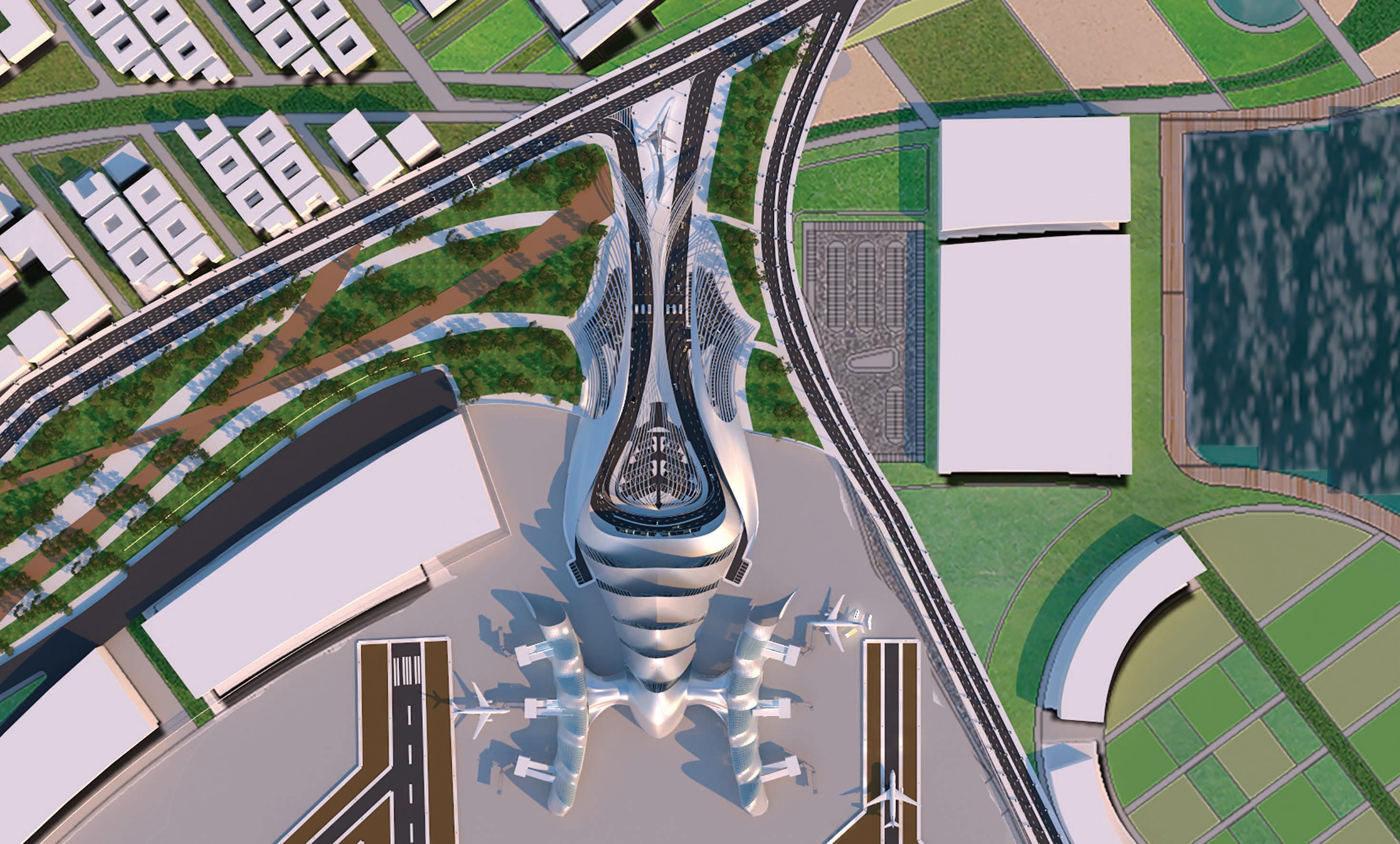 The concept of the form design was a mimicry of a lobster shell, giving the structure a unique shape that reflects Alexandria as mediterranean city while integrating all the diffrenet functions and circulations of an international airport.