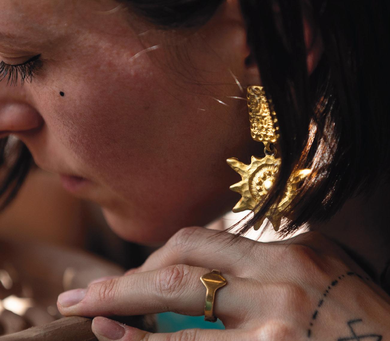 The delicate, Botticelli beauty smiles enigmatically, “A fossicker from Victoria sent me some peridot recently. People know it’s my thing,” she says. “Or they will send me stones they’ve found themselves for me to craft into jewellery.”