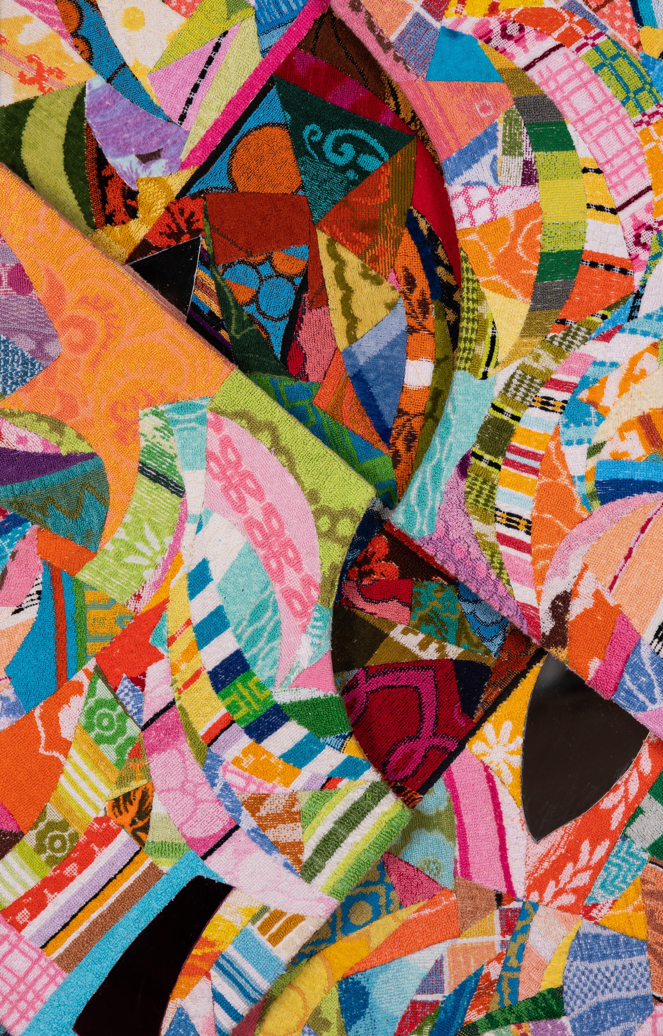 The process of creating un/conscious took Jamie-Lee over nine months and countless pieces of vintage textile offcuts; all while she was pregnant with her first child and coincidentally finding herself doing what has long been considered ‘women’s work’ – working with textiles. The long and rich history of women working with textiles is more than just earning a living; it has always been an accessible way of expressing memories, emotions and experiences.