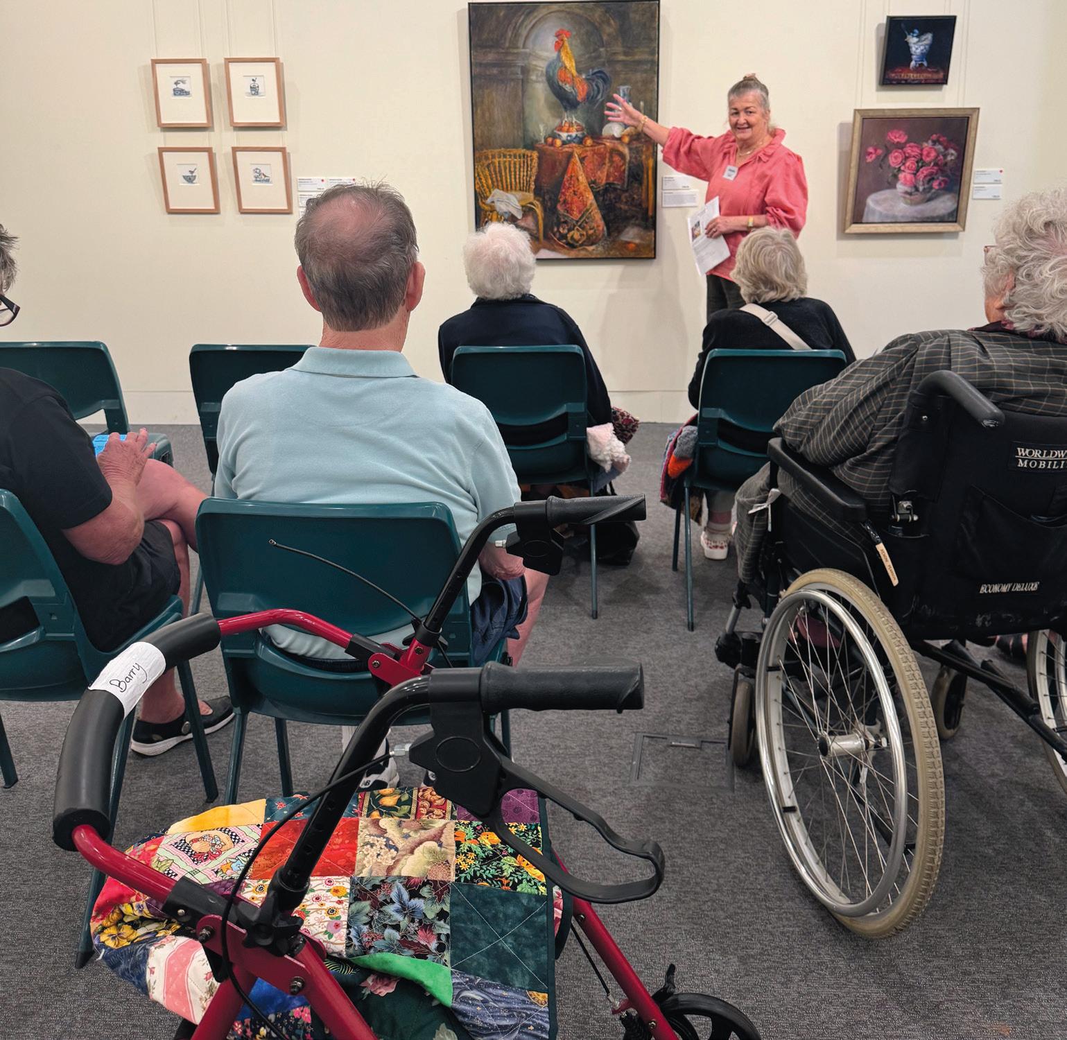 At NERAM, the program sessions begin with a social morning tea to encourage everyone to feel welcome and comfortable. A rainbow of handknitted and quilted rugs are tucked around knees and chocolate chip biscuits are passed around. As participant numbers have increased over time, the group now splits into two, with each moving separately through the gallery.