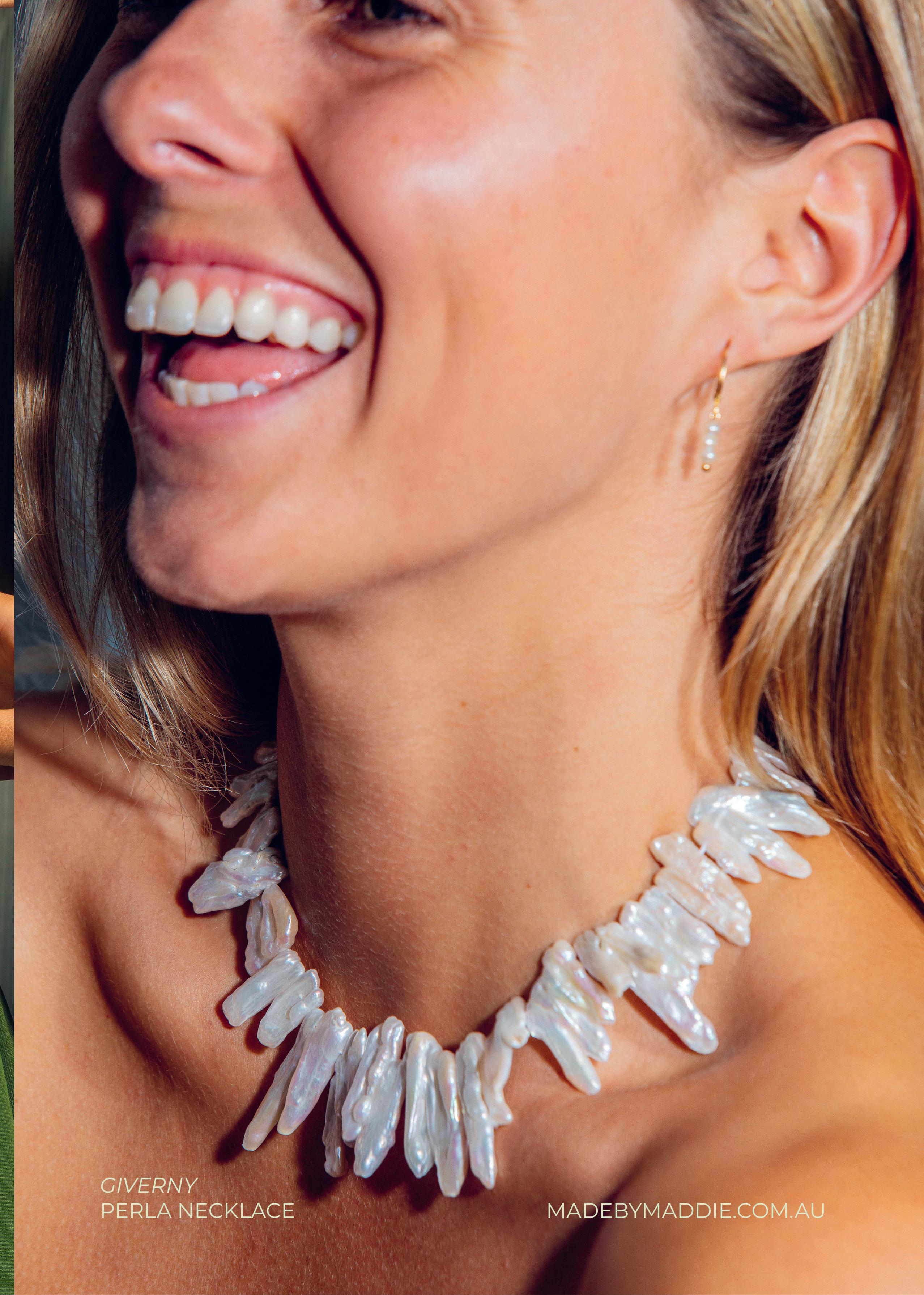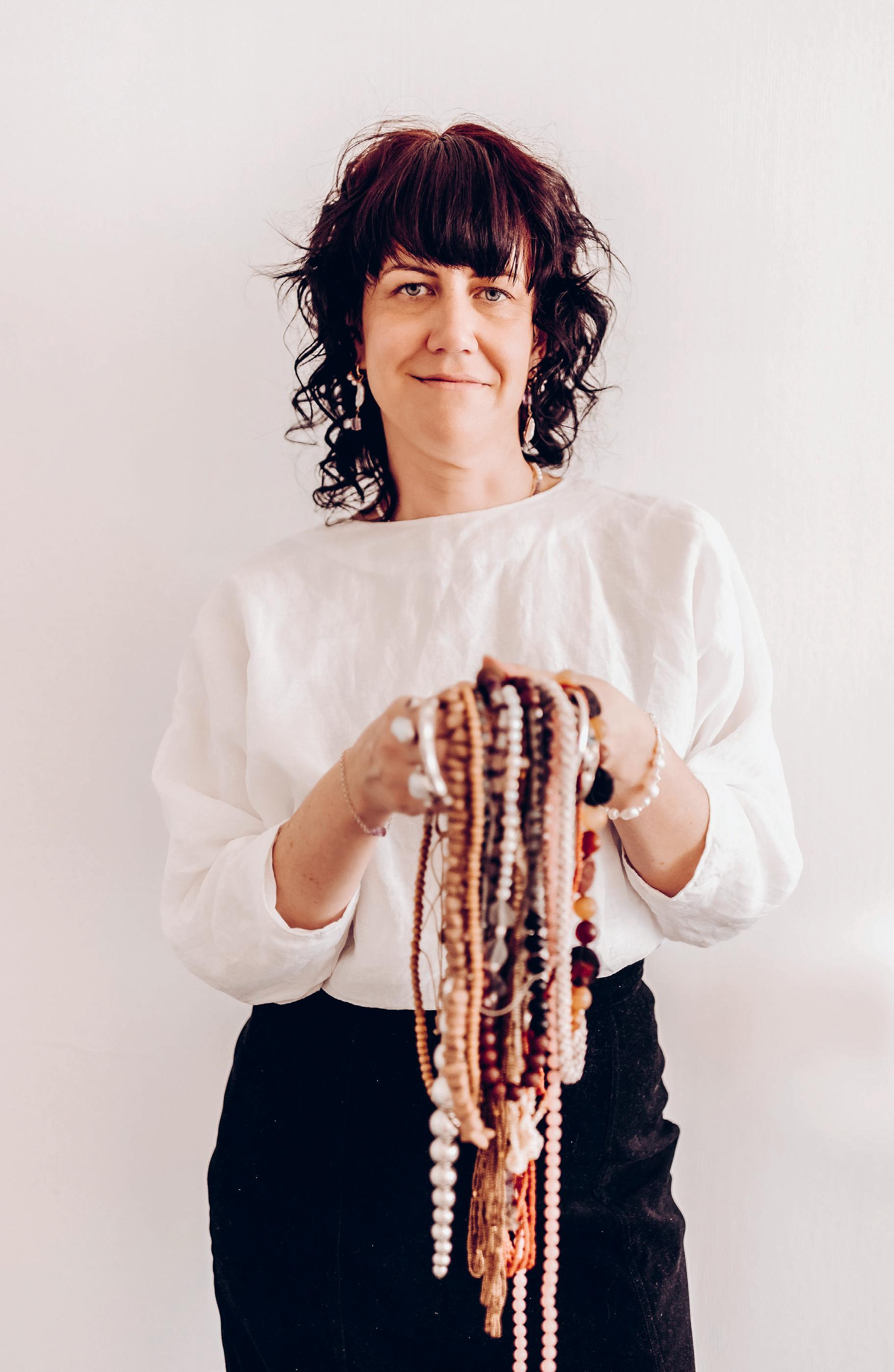 Tell us a bit more about your workshops… I’ve been hosting mobile workshops for a while, but now that I have a dedicated space I’m so excited to offer them on a regular basis. People can make an appointment, name their budget, then I’ll guide them through the process of creating a piece within that price range. They can of course choose their own beads, pearls and gold or silver hardware, customise the length of a necklace or shape
