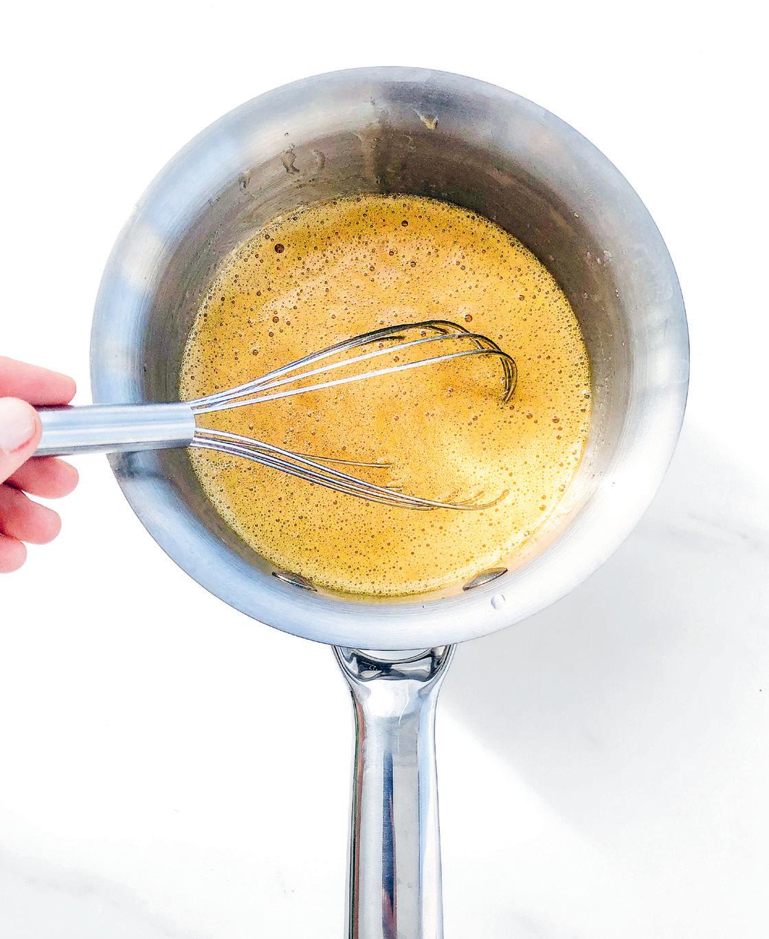 In a small saucepan over low to medium heat, stir the butter, golden syrup and water until combined, melted and warm. Add the bi-carb and stir. Watch the foam. So good.