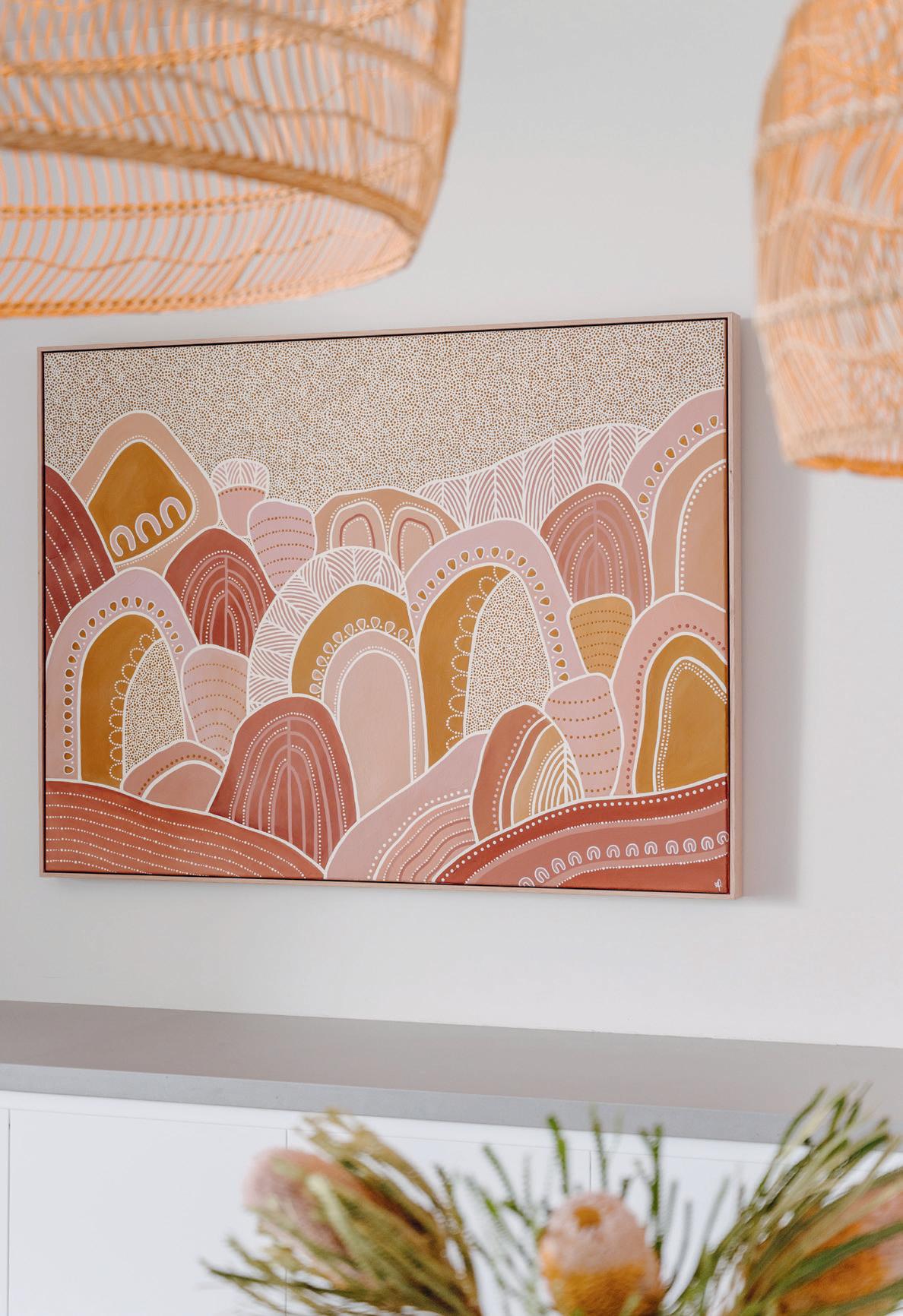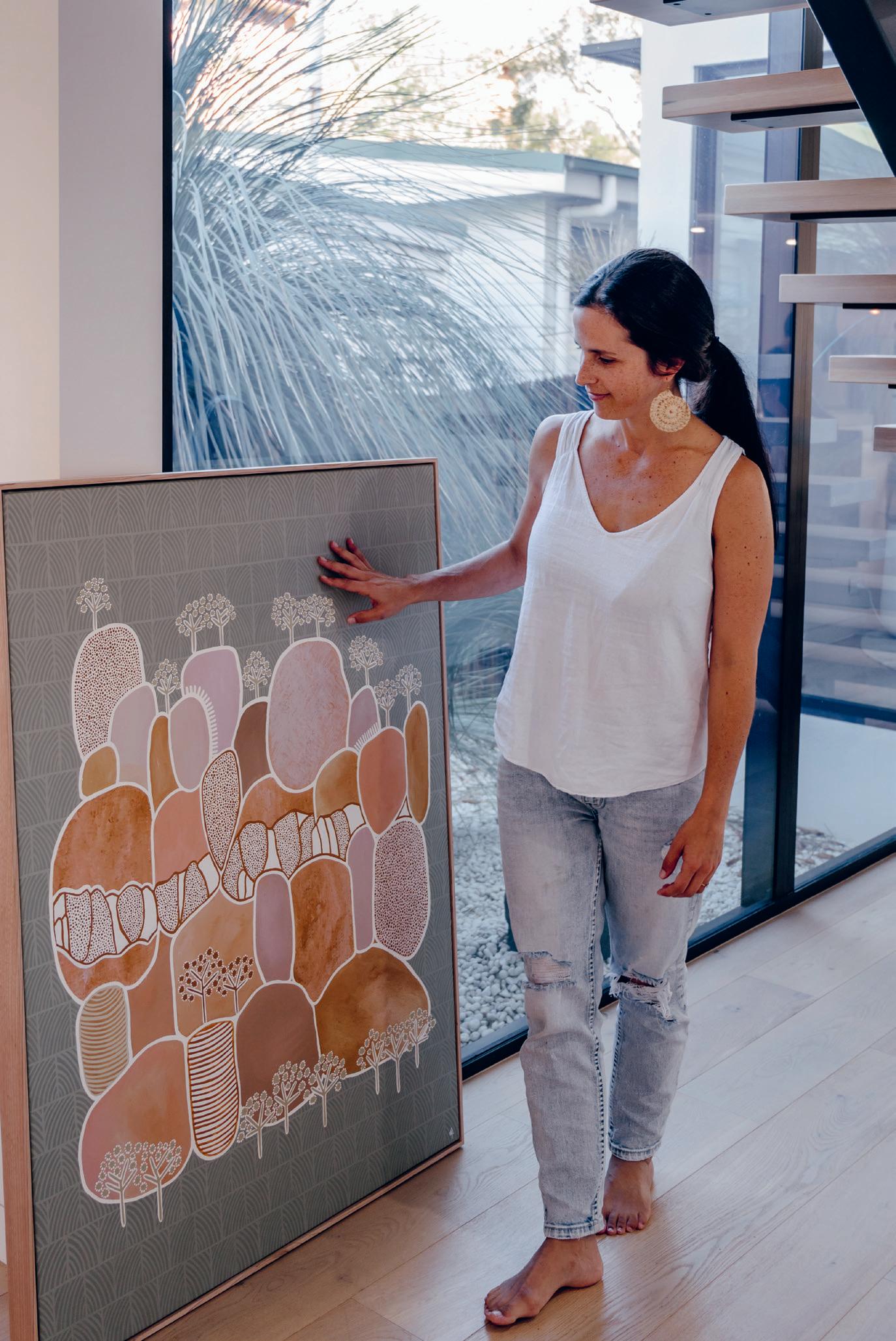 Indigenous artist Lauren Freestone never dreamed people would buy her art – today, her pieces grace the walls of homes countrywide. She’s inspired by her childhood, her family, their story, the country they call home and the stars above.