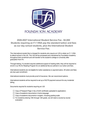 that a grade of a D or higher must be achieved by the end of the course to be accepted by Foundation Academy and credited toward graduation.