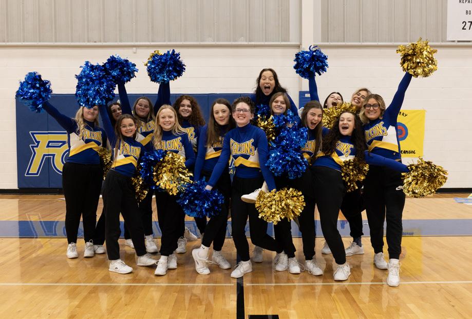 E. The Falcon Cheerleaders lead the blue and gold to victory.