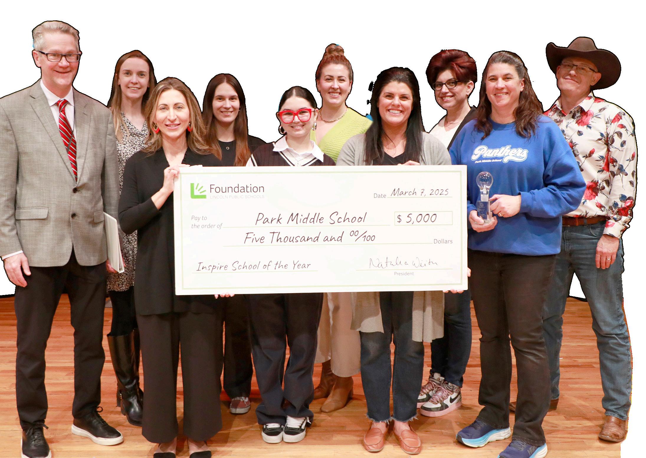 At Park Middle School, every day is an opportunity to see potential, nurture growth, and celebrate achievement. In March of 2025, that dedication was recognized in a big way: Park was named the 2025 Inspire School of the Year by the Foundation for Lincoln Public Schools, the highest honor given to an LPS school or program. Along with this distinction, Park received $5,000 for its Fund for Excellence, supporting initiatives that make a tangible difference for students and staff alike.