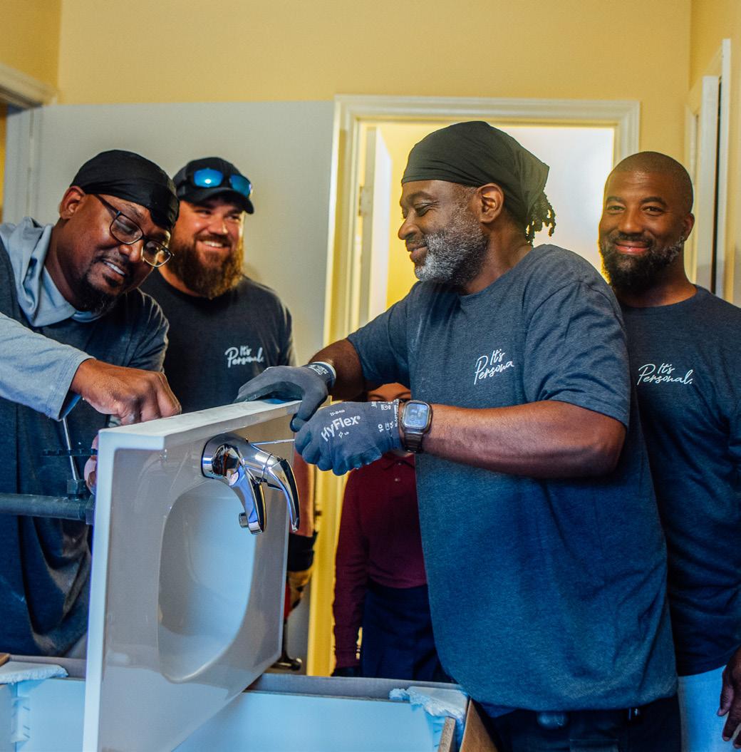 (FROM LEFT) DEXTER GRANT, TONY SANTITORO, ANTRONE BRODIE, AND DONALD BRUMFIELD HELP INSTALL A SINK FOR FAMILY PROMISE OF WAKE COUNTY.