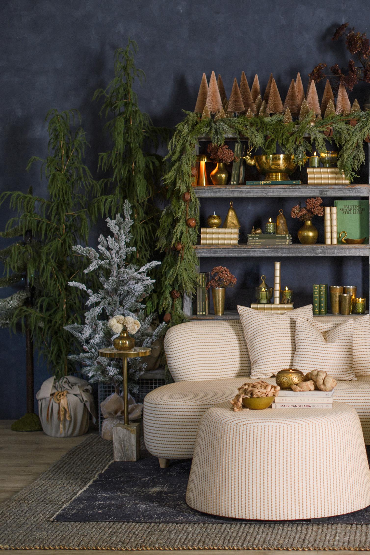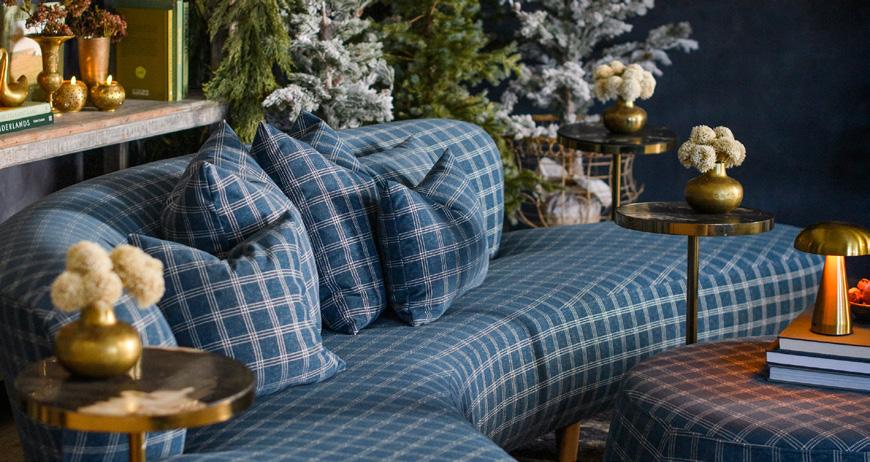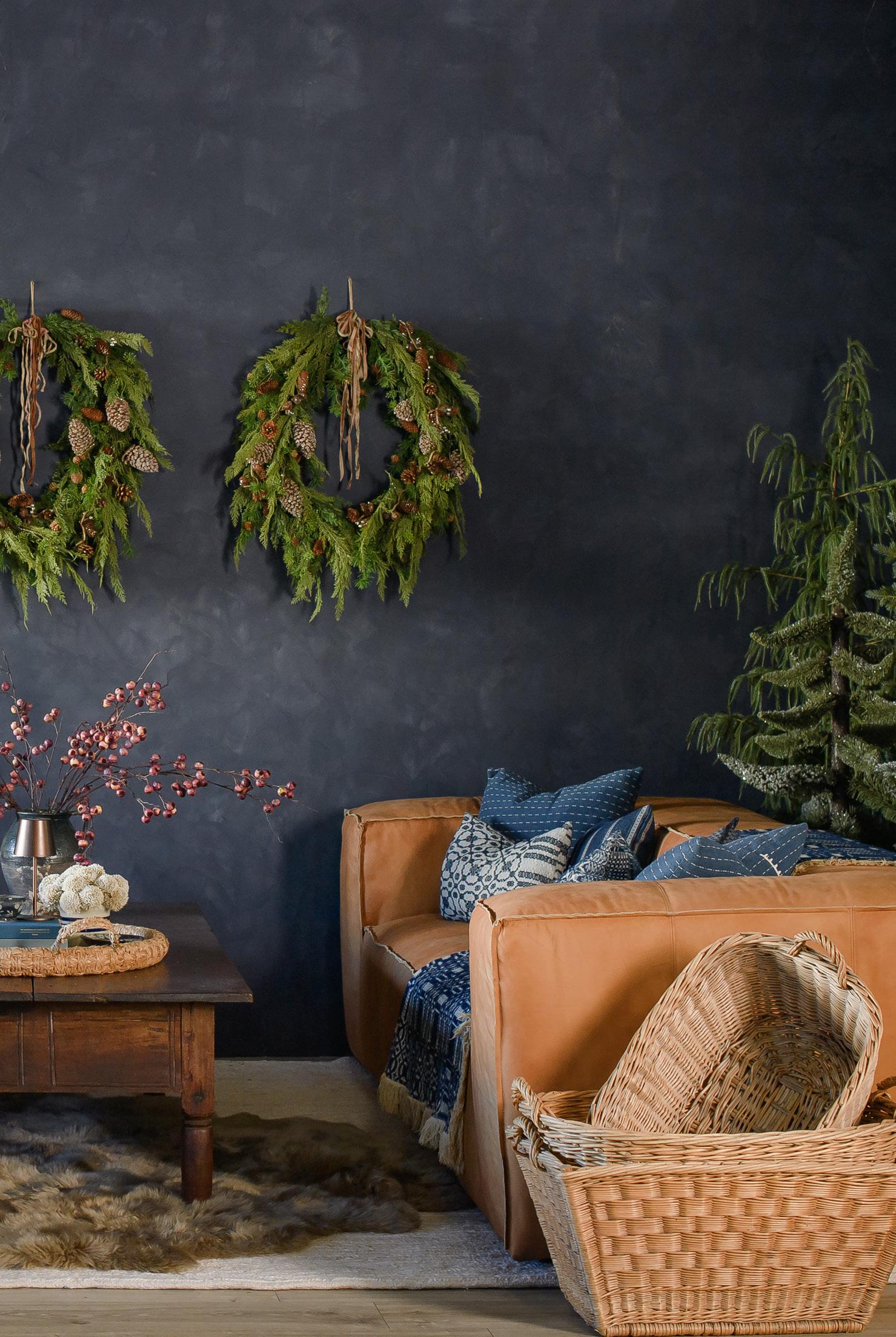 Think outside of the traditional holiday color palette! Consider blue for a quieter kind of winter warmth.