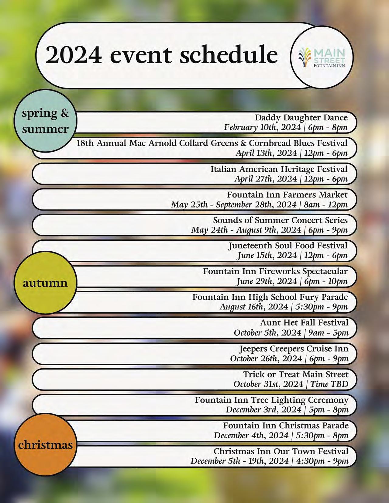 Stay tuned to our Newsletters and Social Media for information on these and all other Fountain Inn Chamber events!