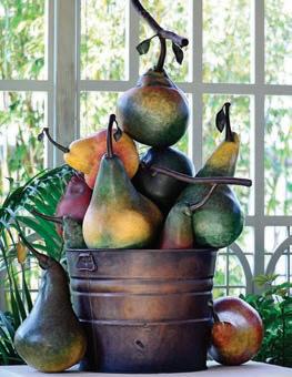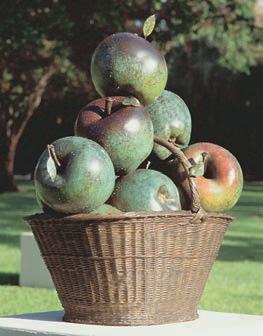 Monumental Apple Basket and Pear Harvest are located inside the Pannill Pavilion. Created by the Spanish and American duo Luis Montoya (b. 1950) and Leslie Ortiz (b. 1957), the hyper realistic sculptures are part of their series Culinary Adventures, which depicts oversized representations of common fruits and vegetables. Montoya and Ortiz have been collaborating since 1994. Together they oversee every phase of their creation process from design and modeling to casting and patination.