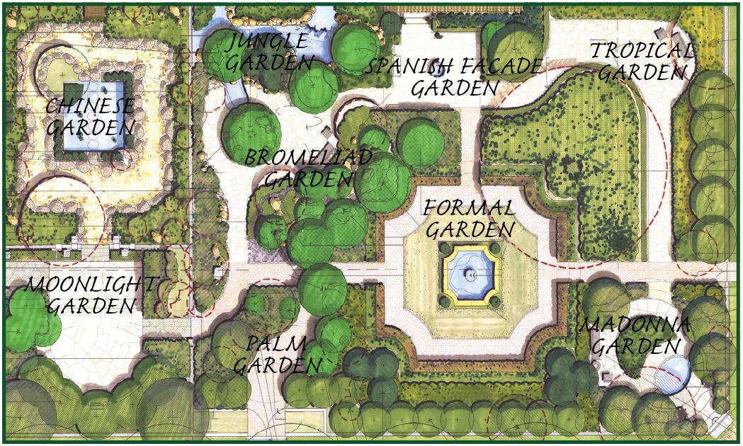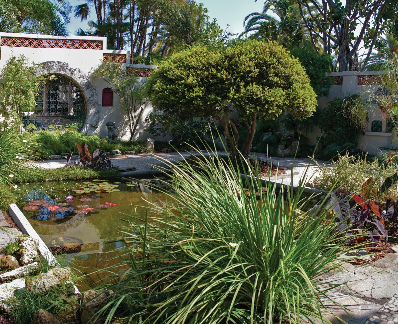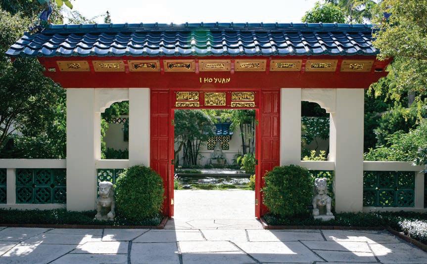 Welcome to The Four Arts’ Demonstration Gardens. Originally planted in 1938 by members of the Garden Club of Palm Beach, many of whom were members of The Four Arts, the gardens were designed as demonstration gardens to educate residents about plants that thrive in the South Florida climate. Garden club members divided the space into thematic sections and selected plants, sculptures, and architectural features for each unique setting: Chinese garden by Mrs. Lorenzo Woodhouse, Italian garden by Mrs. Joseph Cudahy, Moonlight garden by Mrs. Joseph F. Gunster, Bermuda style English garden by Mrs. Clifford V. Brokaw, Rose garden by Mrs. Hugh Dillman, Jungle garden by Dr. Leroy Dow, Madonna tropical fruit garden by Mrs. Alfred G. Kay, and a Spanish Patio built by Mrs. John S. Phipps. These enchanted gardens continue to teach residents and visitors today and are maintained by the Garden Club of Palm beach. To learn more, please visit: https://gardenclubpalmbeach.com/.