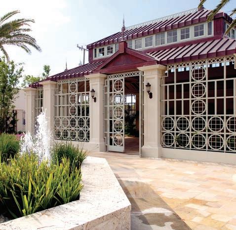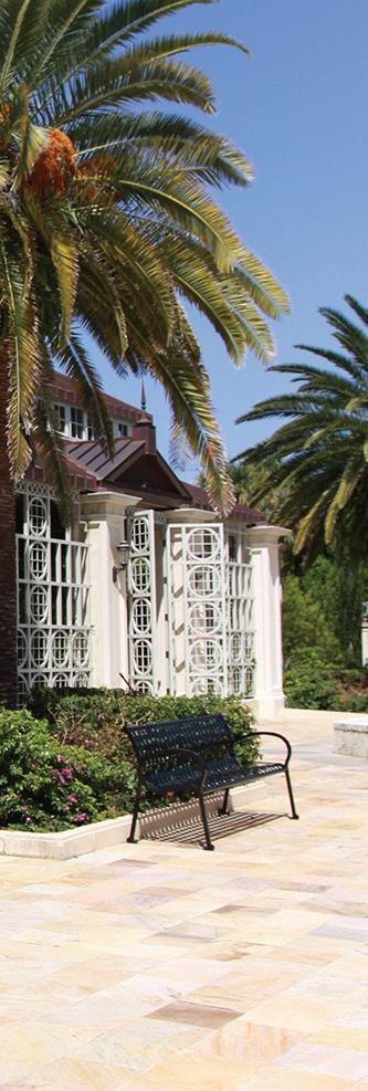 Do you notice anything special about the walkway leading to the West Terrace? Close inspection reveals that the walkway contains colorful sea shells. The walkway is concrete, a strong building material made by mixing cement, sand, water, and in this case sea shells mined from Northeast Florida. While the ancient Egyptians used early forms of concrete, the Romans are credited with developing the cement-based concrete still used widely today. 31