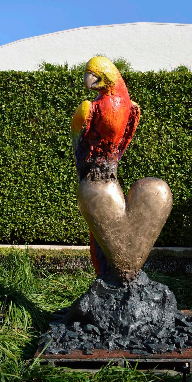 The motif of the heart in the work of American artist Jim Dine (b. 1935) dates to 1966 when he made his earliest major sculpture, Nancy and I at Ithaca (Straw Heart). According to curator John Gordon, his hearts are “touching and powerful, full of joy and affection.” This is poignant, given that Mary Tremaine Hildt donated King Parrot to The Four Arts to commemorate her late son. The parrot is a scarlet macaw from the Amazon, where indigenous peoples believe the bird is associated with transmigration, or the passage of a soul after death into another body.