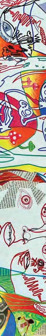 The titles of the literary pieces in this volume are set in Hypatia Sans Pro. The body text is set in Adobe Caslon Pro. The literary, art, and photography credits are set in Hypatia Sans Pro. Variances in size are used for titles of literary pieces, art, and photography, as well as names of authors and artists. The table of contents is set in Hypatia Sans Pro with variances in size for titles and subtitles. The magazine was designed using Adobe Photoshop 2023 and Adobe InDesign 2023. The 124-page book is printed on 100# silk coated stock by 360 Press Solutions.