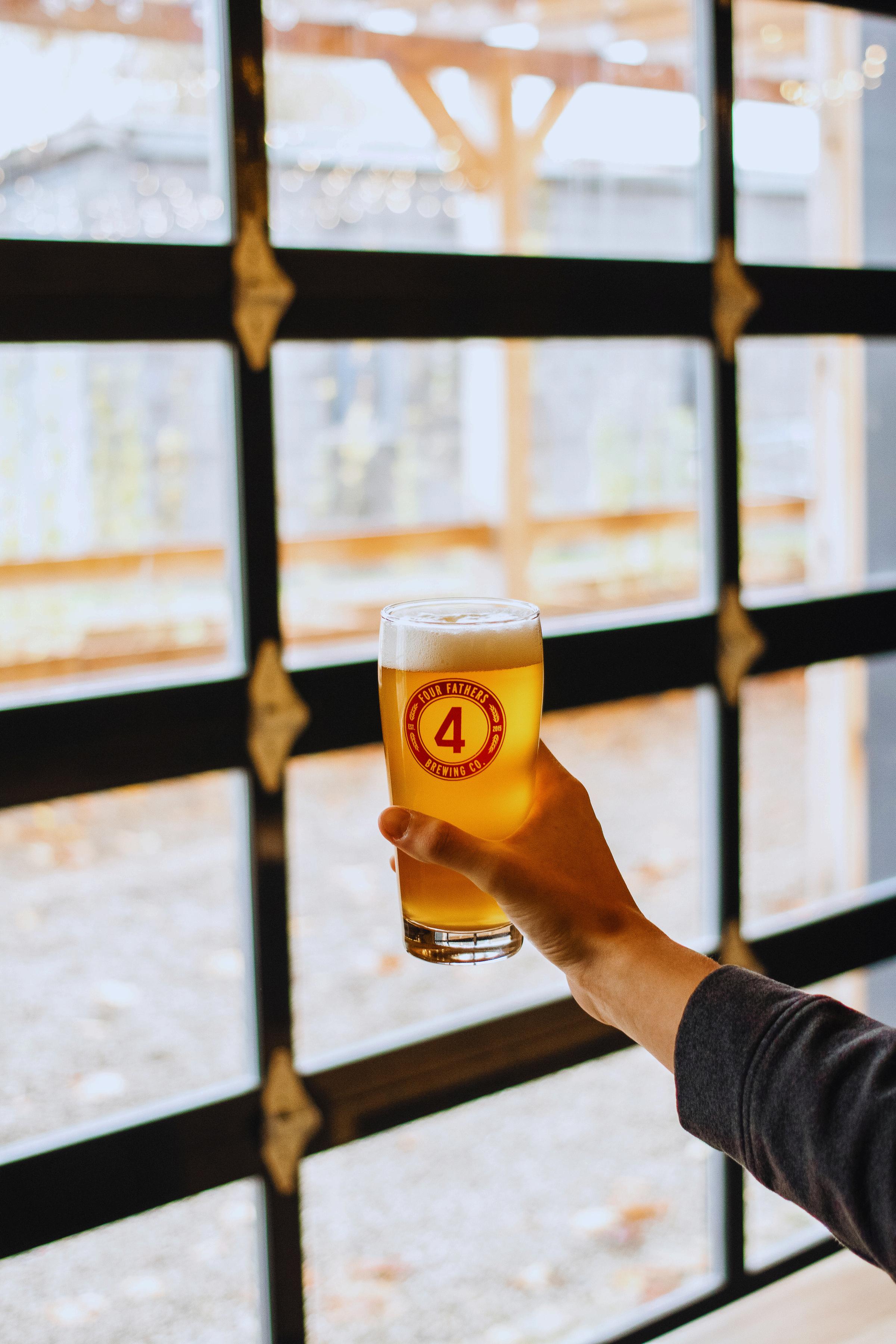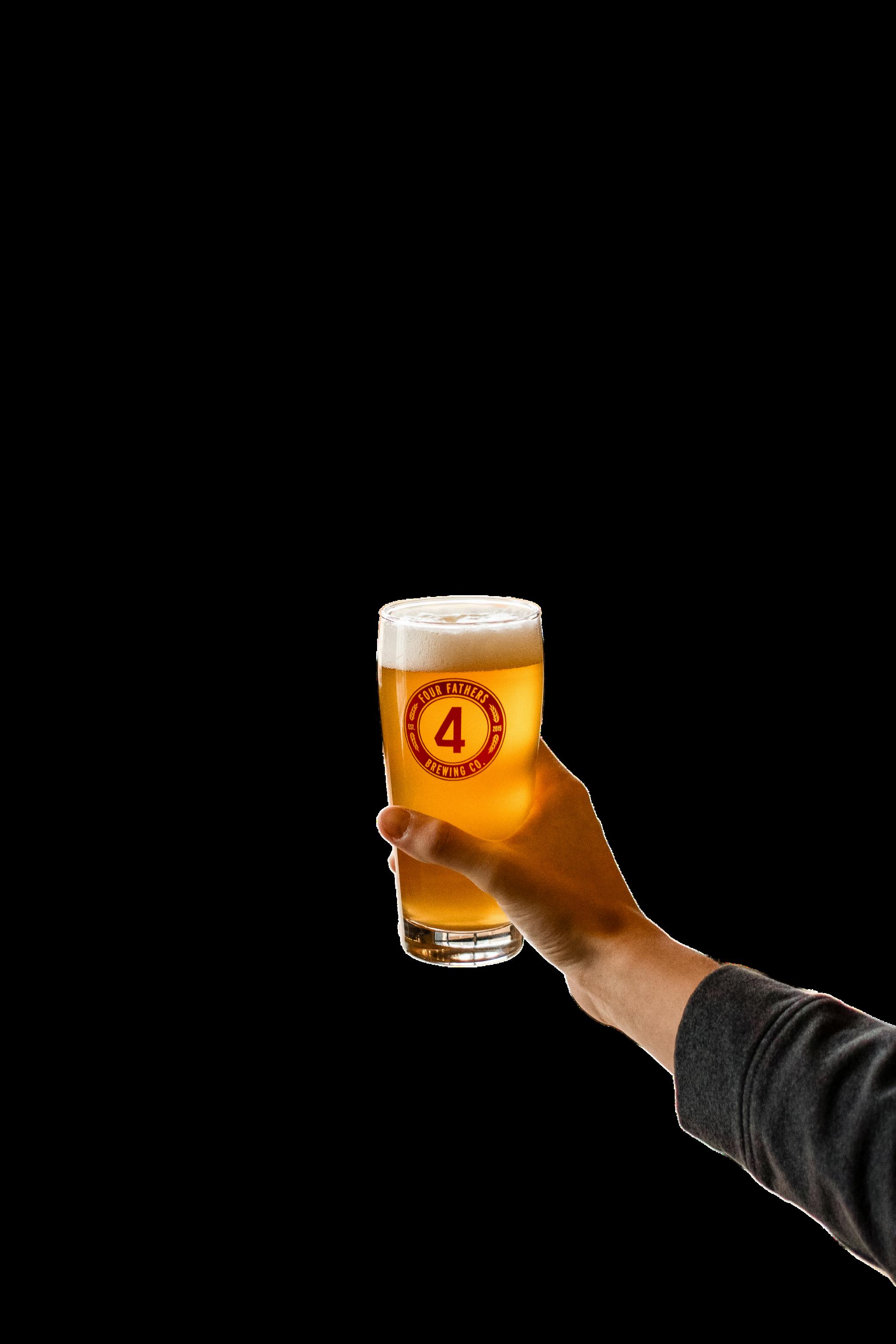 wine (2oz.) rye (0.5oz.), blackberry gin (0.5oz ), cranberry juice, lime juice, simple syrup, topped with it takes a village lager, garnished with lime wedge