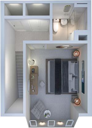 • LED downlighters to ceiling.