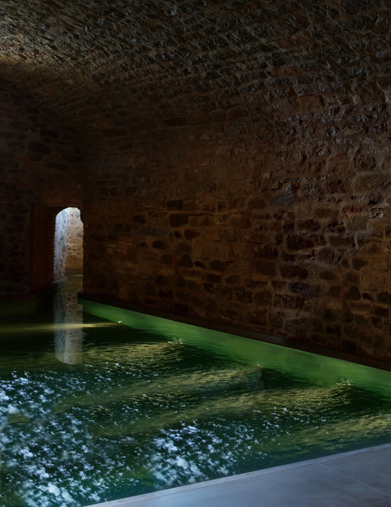 It is a magnificent space, where those with healing hands caress and care, restoring one’s equilibrium. The Private Room of the Bathhouse is in the oldest part of the castle. Many of the therapies are equally ancient, handed down through generations, using foraged ingredients, such as a honey scrub followed by a camomile bath or a massage with Iperico oil and the use of bay leaves in the Hammam. There is a roaring open fire, two conversation baths, a large day bed and two massage beds. Tisane is served and it becomes your own secret world for half a day.