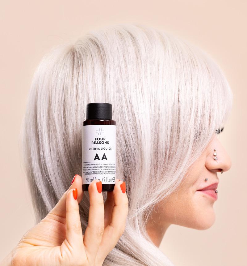 Four Reasons Optima on nykyaikainen värisarja monipuolisiin värjäystöihin, kun väreiltä halutaan peittokykyä, pysyvyyttä ja vivahteikkaita lopputuloksia. Optima häivyttää rajan kevyt- ja kestovärien välillä – laajasta sävyvalikoimasta löytyy tuotteet lähes kaikkiin kampaamoissa tehtäviin värjäystöihin.