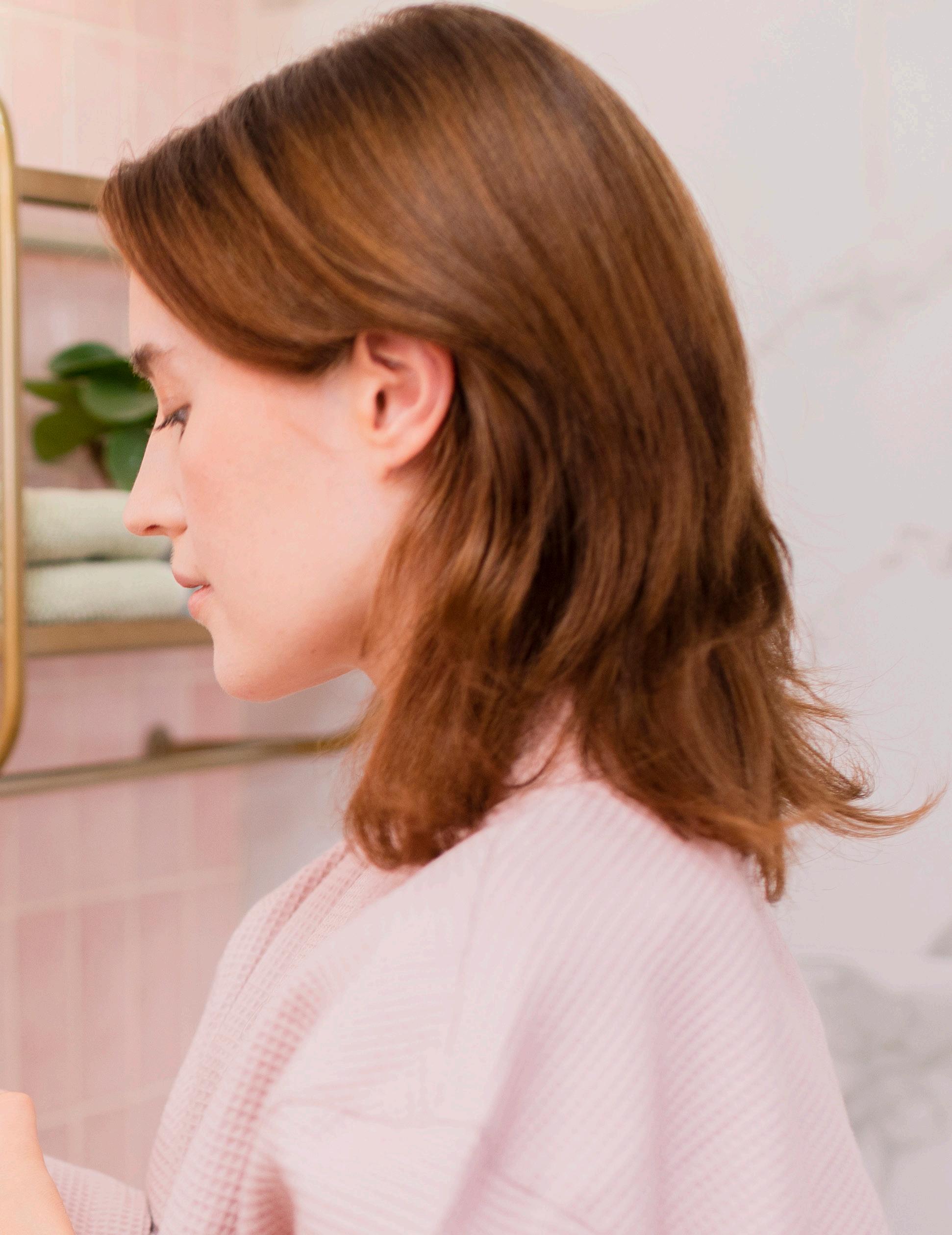 VAIHE 1: Pese hiukset huolellisesti syväpuhdistavalla shampoolla kahteen kertaan. Kuivaa hiukset hiustenkuivaajalla.