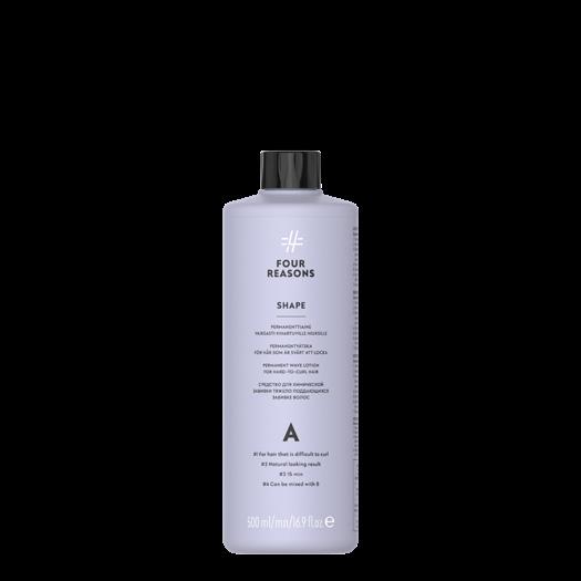 Four Reasons Shape on hiuslaadun mukaan säädeltävä permanenttineste kaikkiin kiharakäsittelyihin. Tuotteen kolme eri vahvuutta ovat keskenään sekoiteltavia jokaiselle hiuslaadulle optimaalisen, kimmoisan kiharan aikaansaamiseksi. Kasviperäiset proteiinit luovat tasalaatuisen, elinvoi maisen kiharan rakenteen. Miedosti hajustettu. Vegaaninen koostumus ja taloudellinen 500 ml pakkauskoko.