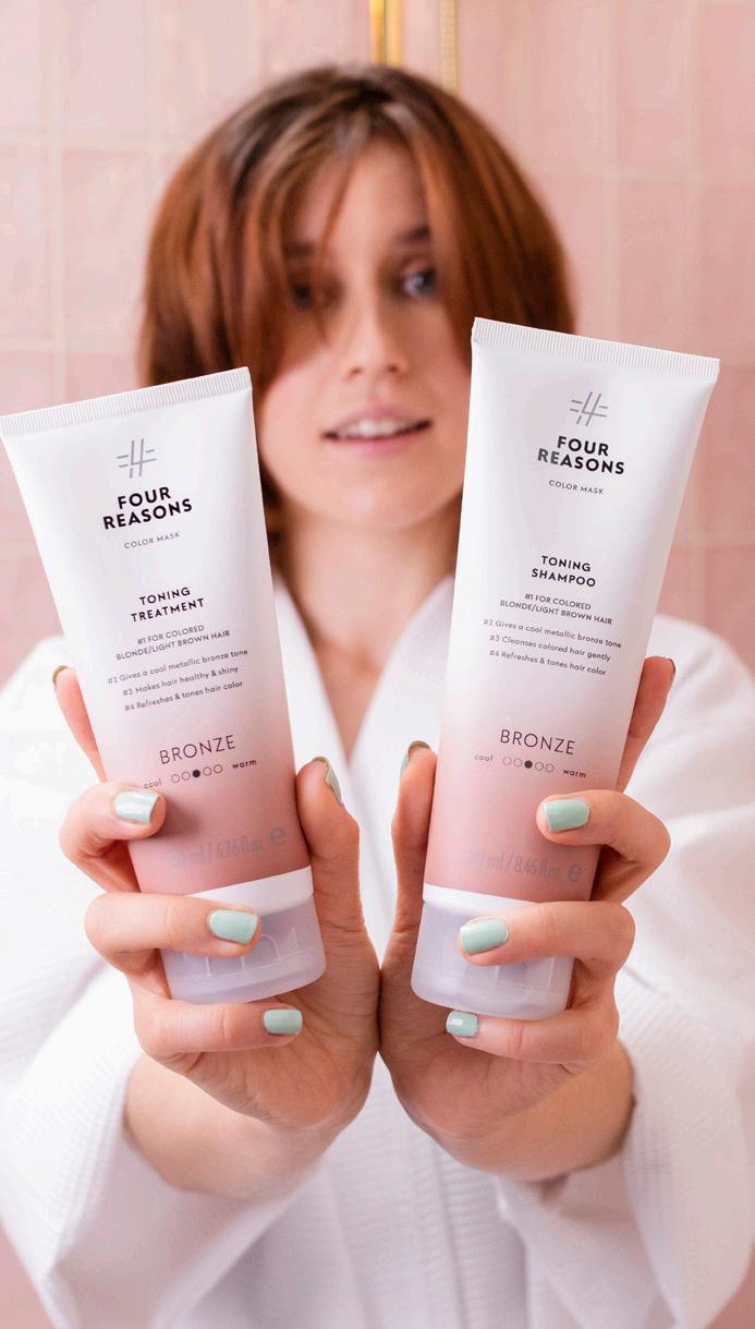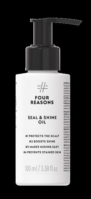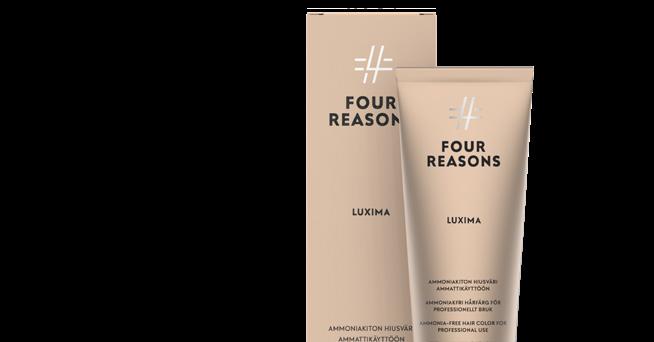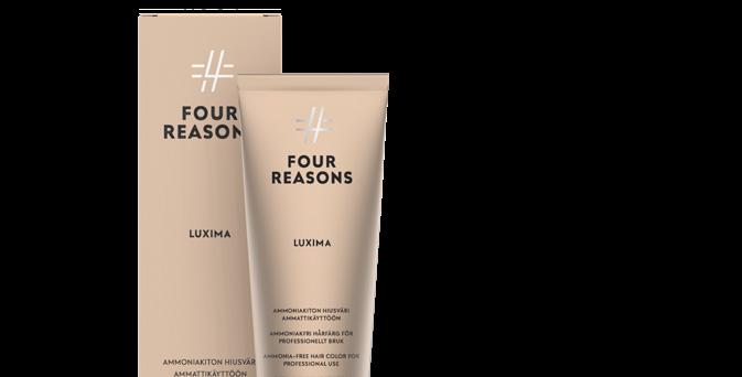 Four Reasons Luxima on loistava apu värin eloisuuden ja kiillon nopeaan freesaukseen esimerkiksi leikkauksen yhteydessä. Tuote sävyttää raidoitetut hiukset ja voimistaa olemassa olevaa väriä tummentamatta pohjaa.