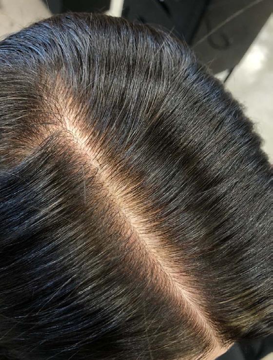 C | Käsitellyt hiukset Luonnostaan huokoiset hiukset, jonka huomaa esimerkiksi kammatessa. Värjätty yli 2 astetta vaaleammaksi, esim. vaalennus värjätyt tai vaalennetut hiukset.