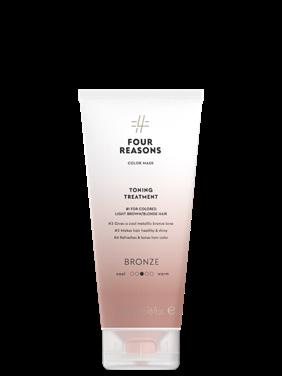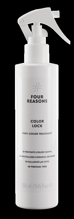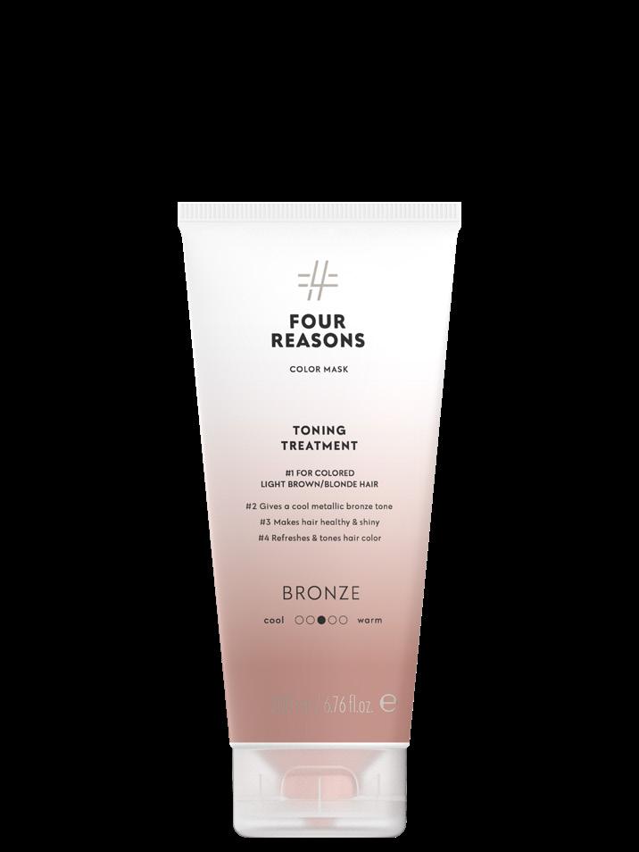 Jos hiuksiin on tehty voimakkaita värimuutoksia, on mahdollista, että värisävy voi haalistua Four Reasons Smoothing Treatment -käsittelyssä. Voit vahvistaa ja virkistää hiusväriä käsittelyn jälkeen hiusten sävyyn sopivalla Four Reasons Color Mask -sävyllä.