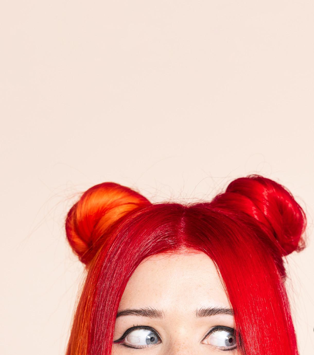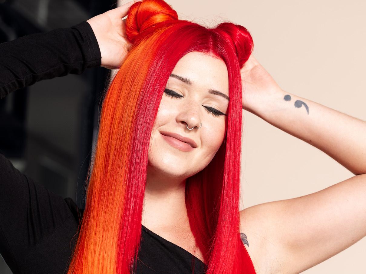 Hennot, vaurioituneet, vaalennetut, luonnonvaaleat, punaiseksi värjätyt hiukset