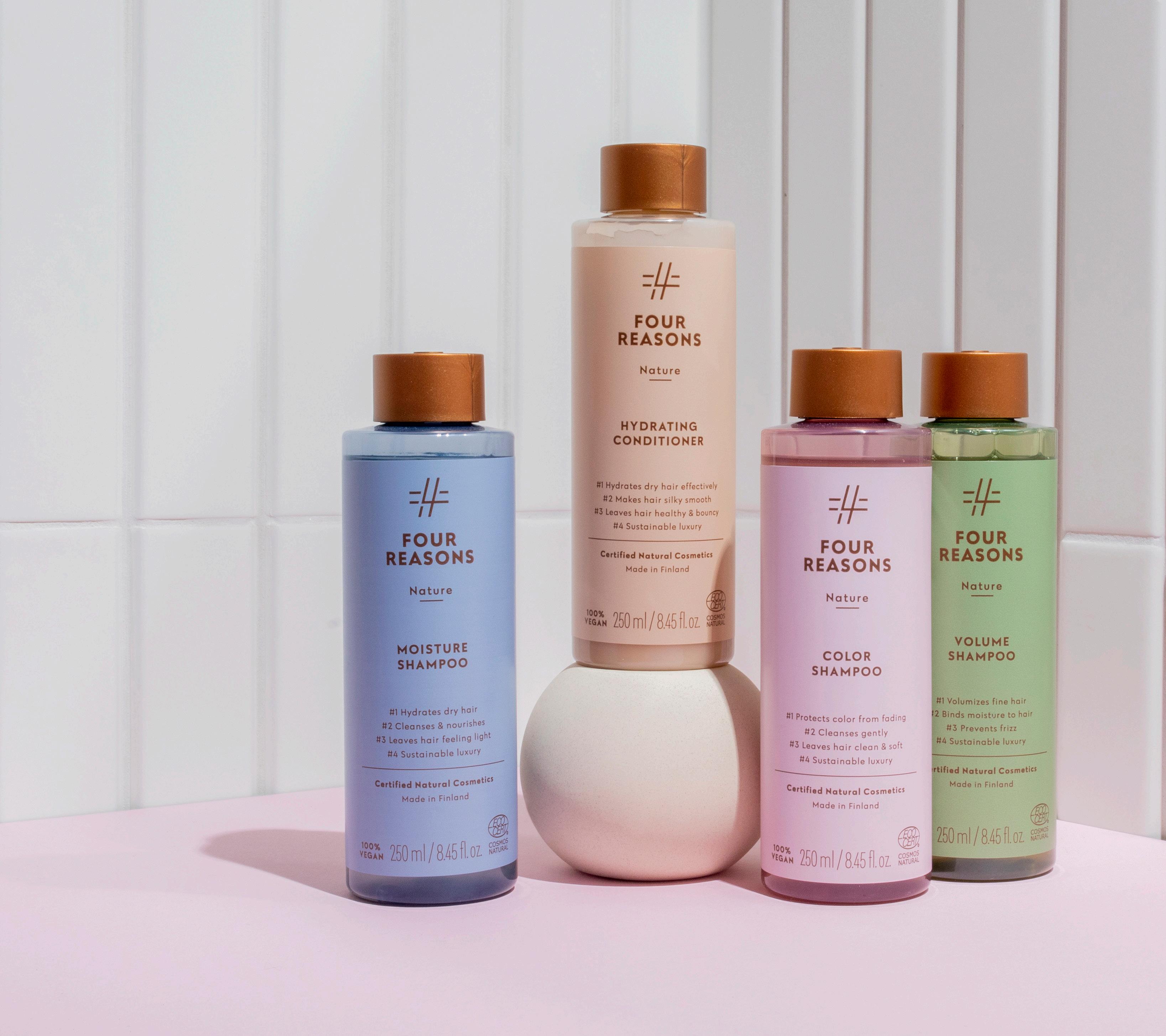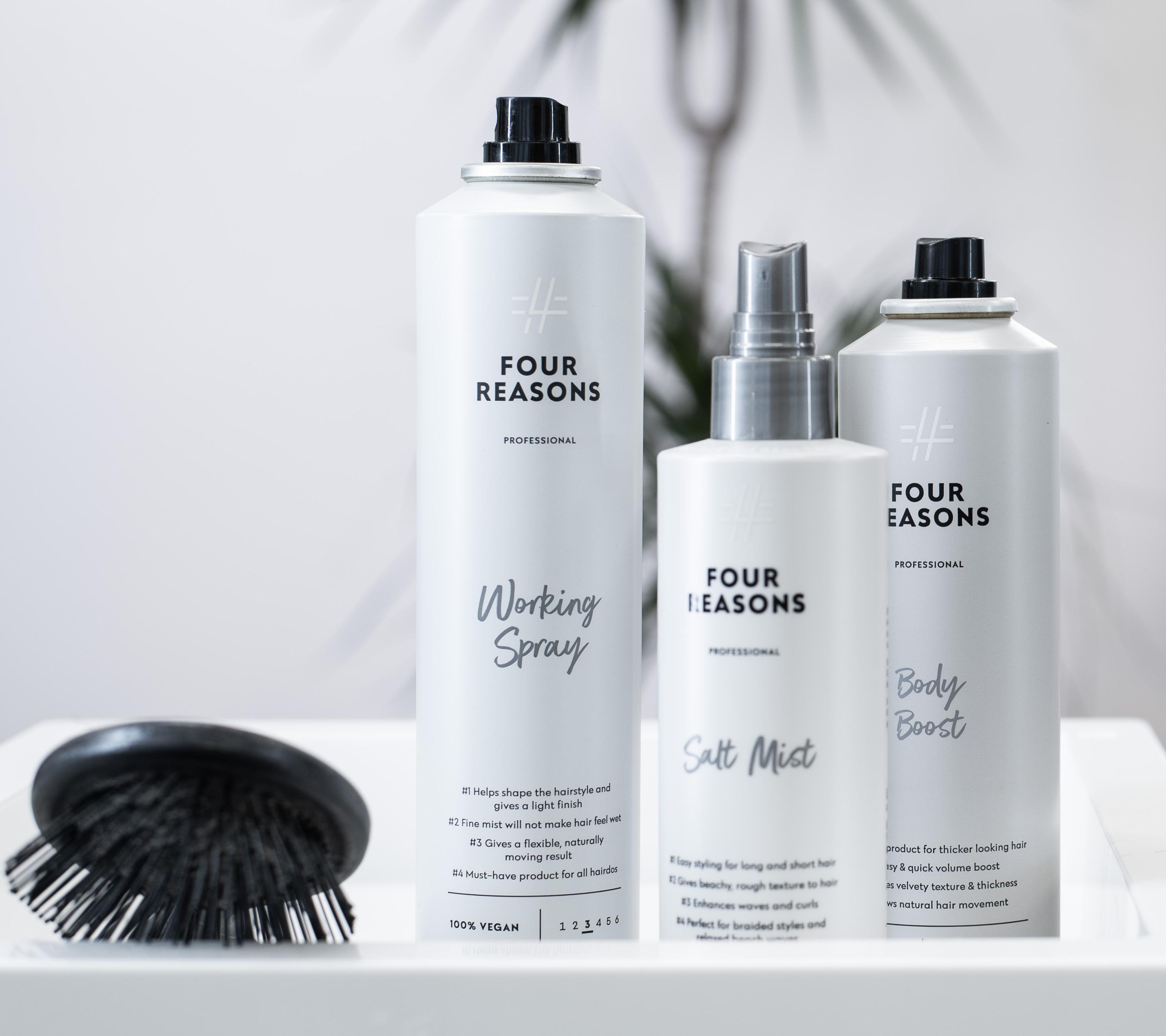 Four Reasons on intohimoisesti hiuksiin suhtautuva kampaamoalan yhteisö, jonka tavoitteena on saada jokainen tuntemaan olonsa upeaksi omana itsenään. 100 % vegaanisia, vastuullisesti tuotettuja ammattilaistason hiustuotteita, rakkaudesta ihmisten yksilölliseen kauneuteen.